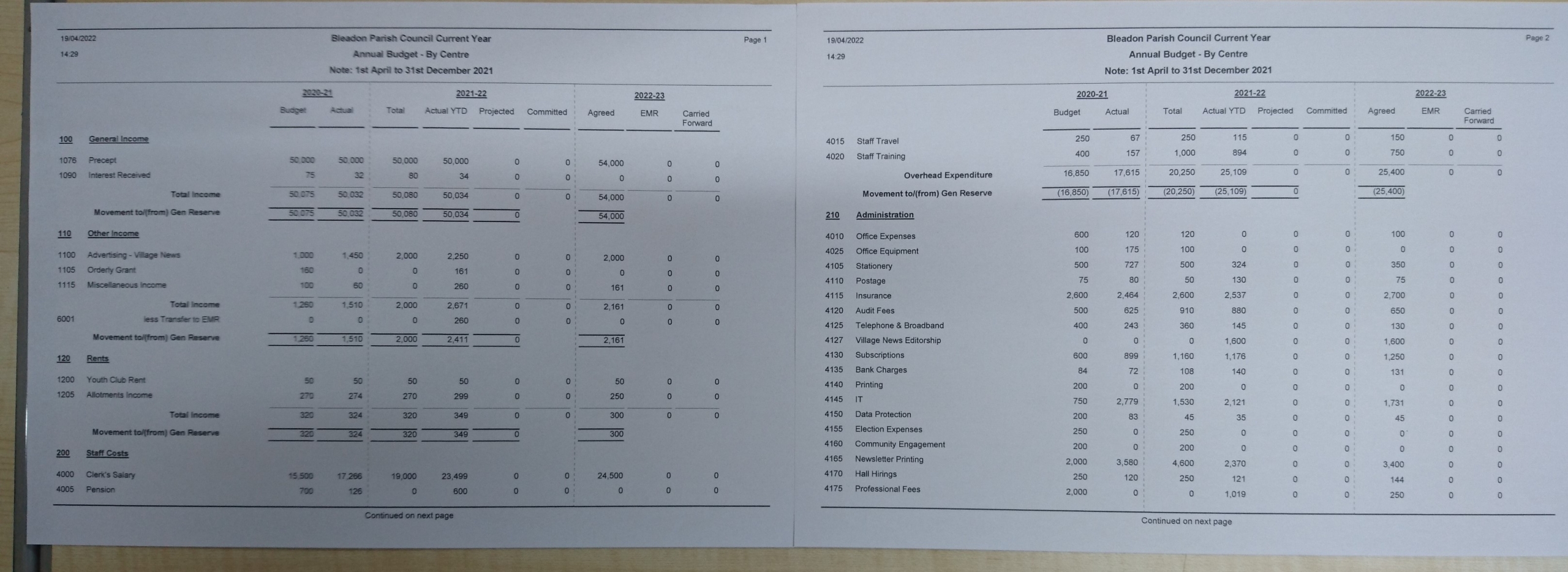 Previous Bleadon AGAR Queries to BPC and External Audit