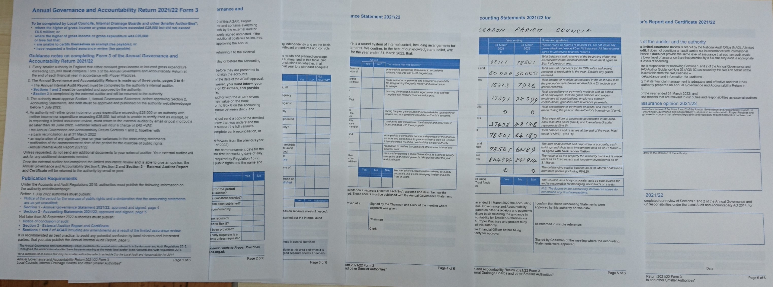 The AGAR process ensures that all councillors’ agreed decisions, and associated income and expenditure have been properly recorded. Also, that all associated documentation has been made accessible to members of the public to view.