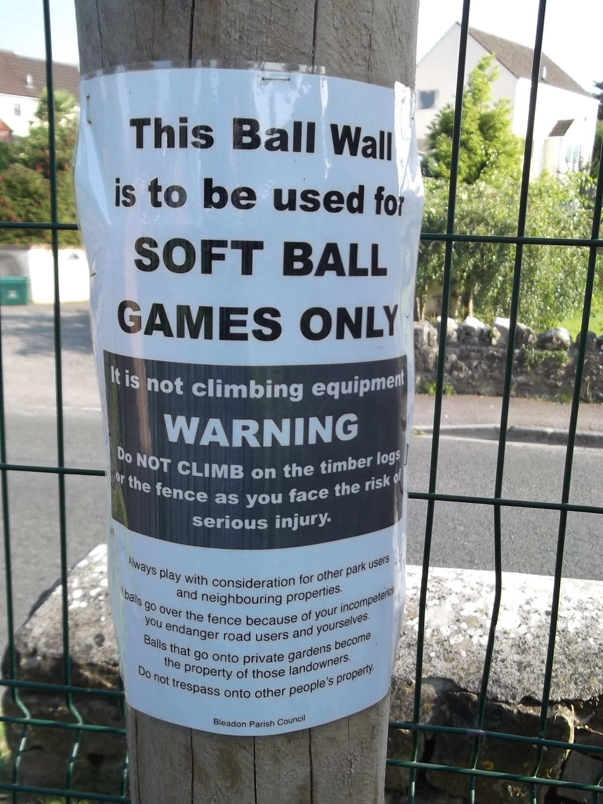 The PC unfortunately decided to put them too close to the fence at a cost of £1000+ where surprise surprise the older children who don't play football (or just aren't competent see this PC notice) went looking to compensate for the removal of the old challenging climbing frame and took to the trees, fences and goalposts to stave their boredom. Already BOB has been informed one child has broken an arm while climbing a tree instead of a purpose built climbing frame.