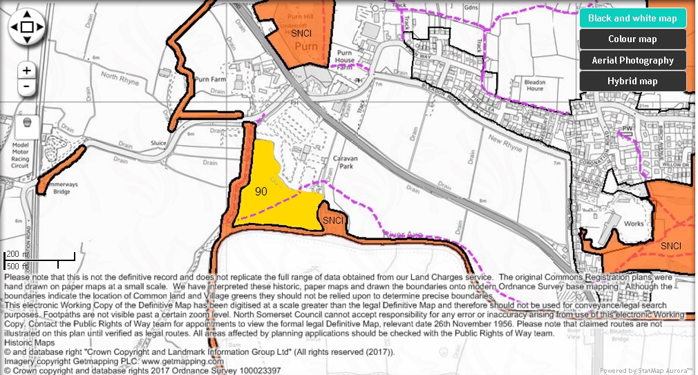 As can be seen from the annotated map above there is a PROW right through the centre of the site. BPC recently minuted "Footpath down by the river on the A370 recommends to be closed. The river has been penned and the footpath is seen to be dangerous, as the grass has got so wet there is nothing stable to walk on. The Clerk to inform North Somerset Council that the state of the footpath is dangerous." (12 Jun 17 Min 296.17.c). There is no mention as to whether this is a permanent or temporary closure, so in light of this new application we sincerely hope that BPC will ensure that this beautiful riverside footpath through green fields along the river Axe remains open. We are still waiting for BPC to respond to our requests to confirm their duties and responsibilites, but we last asked about PROWs in relation to the May 17 BPC meeting minutes, where the Village Ranger was being asked to maintain a PROW rather than NSC, thereby the public potentially paying twice for the same footpath access.