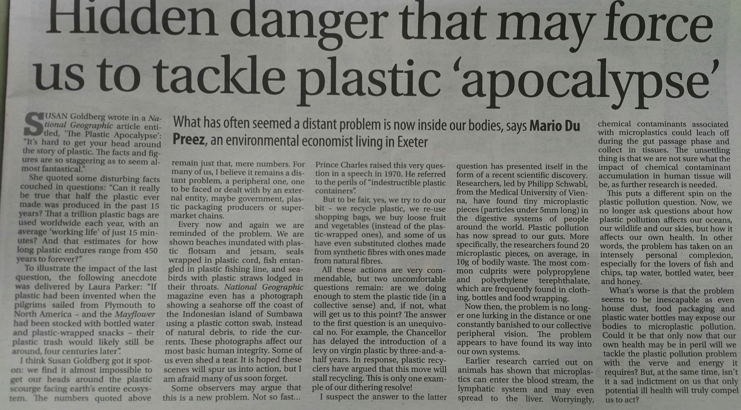 Environmentalist Mario Du Preez wrote this week in the Western Daily Press,