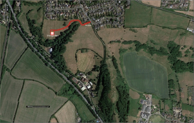 " Erection of agricultural barn for livestock housing, feed store and machinery store with new access track off Purn Lane."