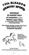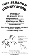 Bleadon Country Sports 2013 Thank you to everyone who came along to the show on the 17th August, and to all the helpers. The weather on the day was dry in-spite of a forecast of heavy storms and high winds! Entries were lower than usual in some of the horsey events but the dog show and the sports went very well. From the proceeds of the 2013 show, £300 was donated to Somerset Levels Riding for the Disabled Association Carriage Driving Group and Hearing Dogs for Deaf People.