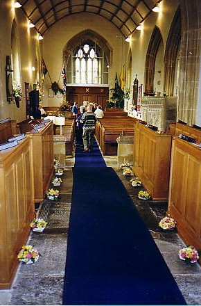 There is good reason to believe that there was a Church on this site in Saxon times, although nothing remains, except perhaps the little stone angel set high in the arch on the North wall. The double dedication of St. Peter & St. Paul was commonly used for Saxon Churches when the two Saints shared the same feast day. The fact that our Church bears this double dedication certainly indicates an early Christian foundation. There is an Anglo-Saxon Charter for Bleadon dated 956 by which the boundaries of the Parish are defined and there does appear to be a reference to a "Church site". When the Doomsday book was compiled, Bleadon was noted as "applied to the use of the Refectory of the Monastery of Winchester". This was the result of a gift by Githa, wife of Earl Godwin and mother of King Harold, who gave Bleadon to Winchester in 1053. It remained in the gift of the Bishop of Winchester until May 1852 when Patronage was transferred to the Bishop of London. In 1903 advowson passed to Miss E. Galloway and one year later in 1904 Mrs. Zara David of Bleadon became the Patron. Mrs. David passed the Patronage to the Guild of All Souls in 1927 where it remains to date.