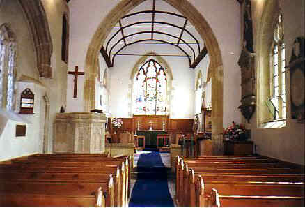 The Chancel This is the oldest part of the present building and is recorded as having been dedicated in 1317. At that time, the East wall was some 12ft further East and there was a Sacristy at the North East corner connected to the Chancel by a door. Traces of this doorway are still visible in the outside wall. The subsequent shortening of the Chancel accounts for the way in which the canopied tomb on the right of the altar is cramped against the East wall. The stone slab covering this tomb was lifted some years ago and a stone coffin was revealed. The Priest's door on the South side of the Chancel has an attractive stone canopy, which incorporates a small monkey-like corbel head on the western side. Set in the wall on the left of the altar is the aumbry. The modern lamp which hangs above denotes the presence of the reserved sacrament.