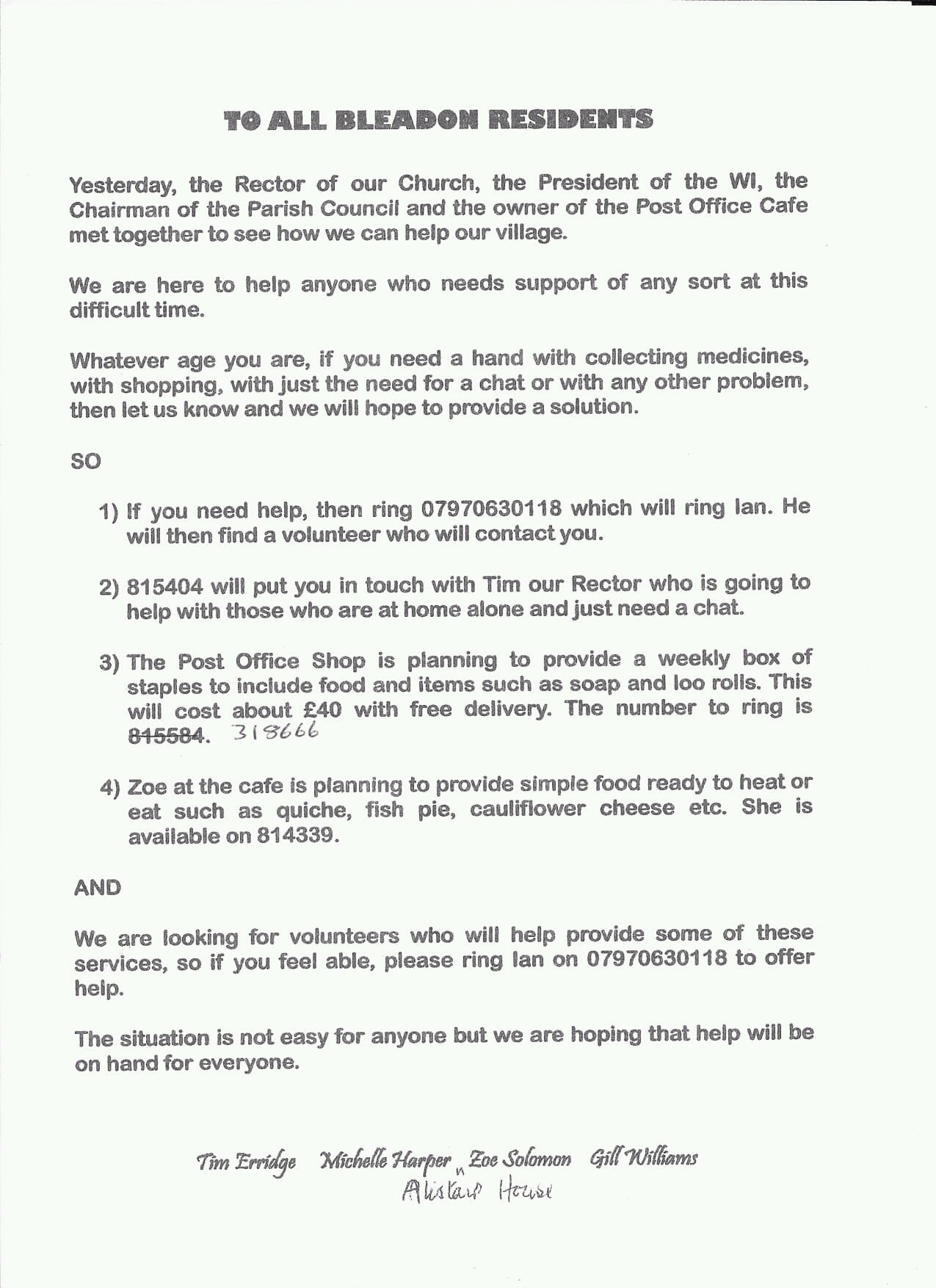 | COVID-19 resident support | Joint initiative BPC, WI, Church & Cafe started March 2019. | ||||