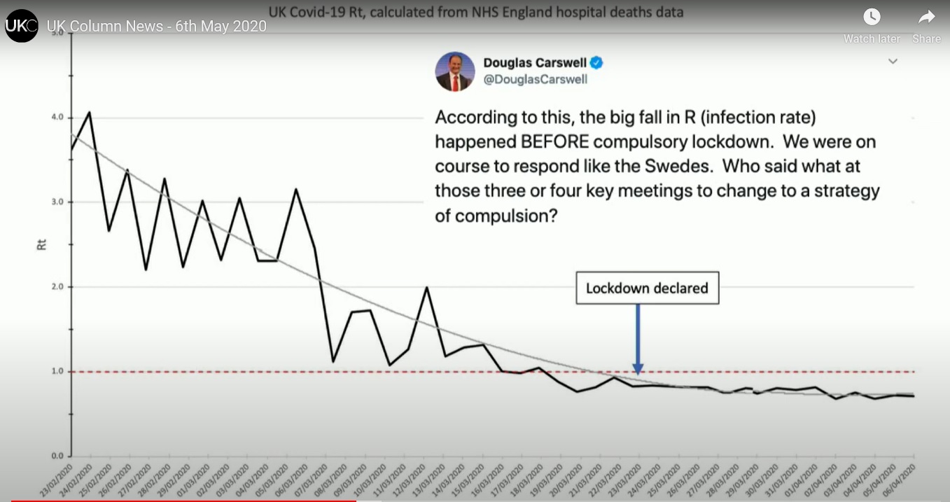 05 MAY 20: A graph showing the big fall in R (infection rate) happened BEFORE compulsory lockdow