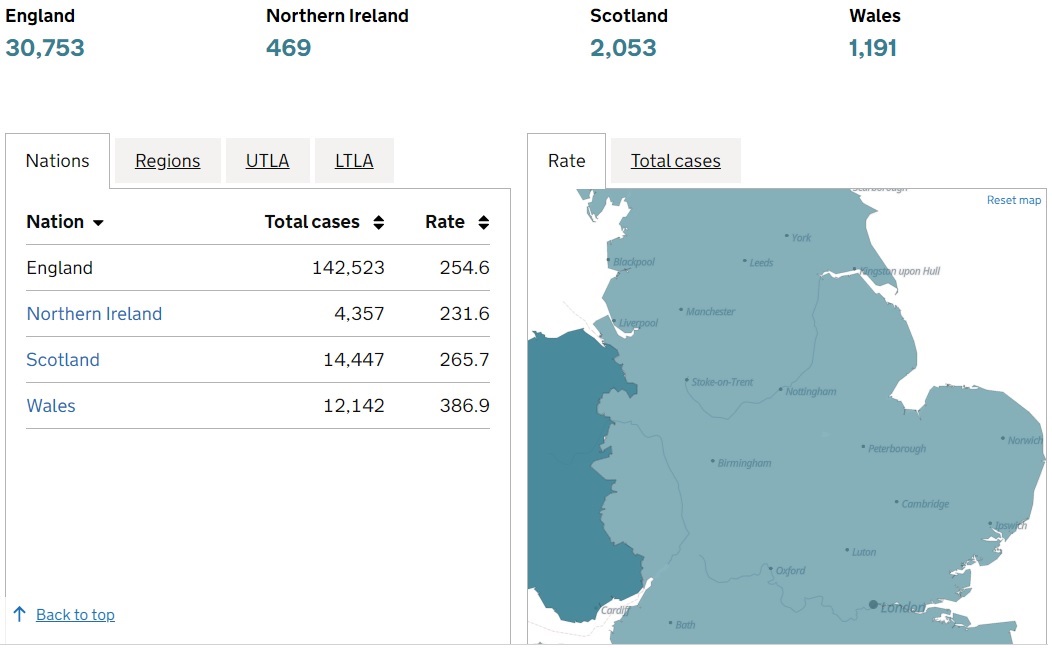 Unlike other countries, the UK does not appear to release recovery rate information. (NB you may need to wait for the table data to display)