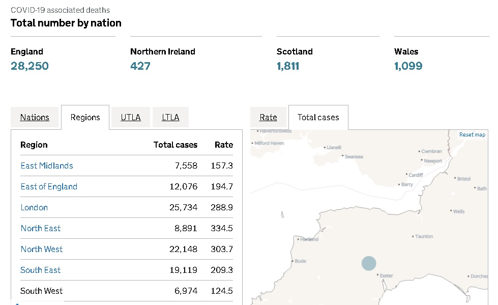 The goverment has published a dashboard showing reported cases of coronavirus in the UK. Also, various ONS Data.