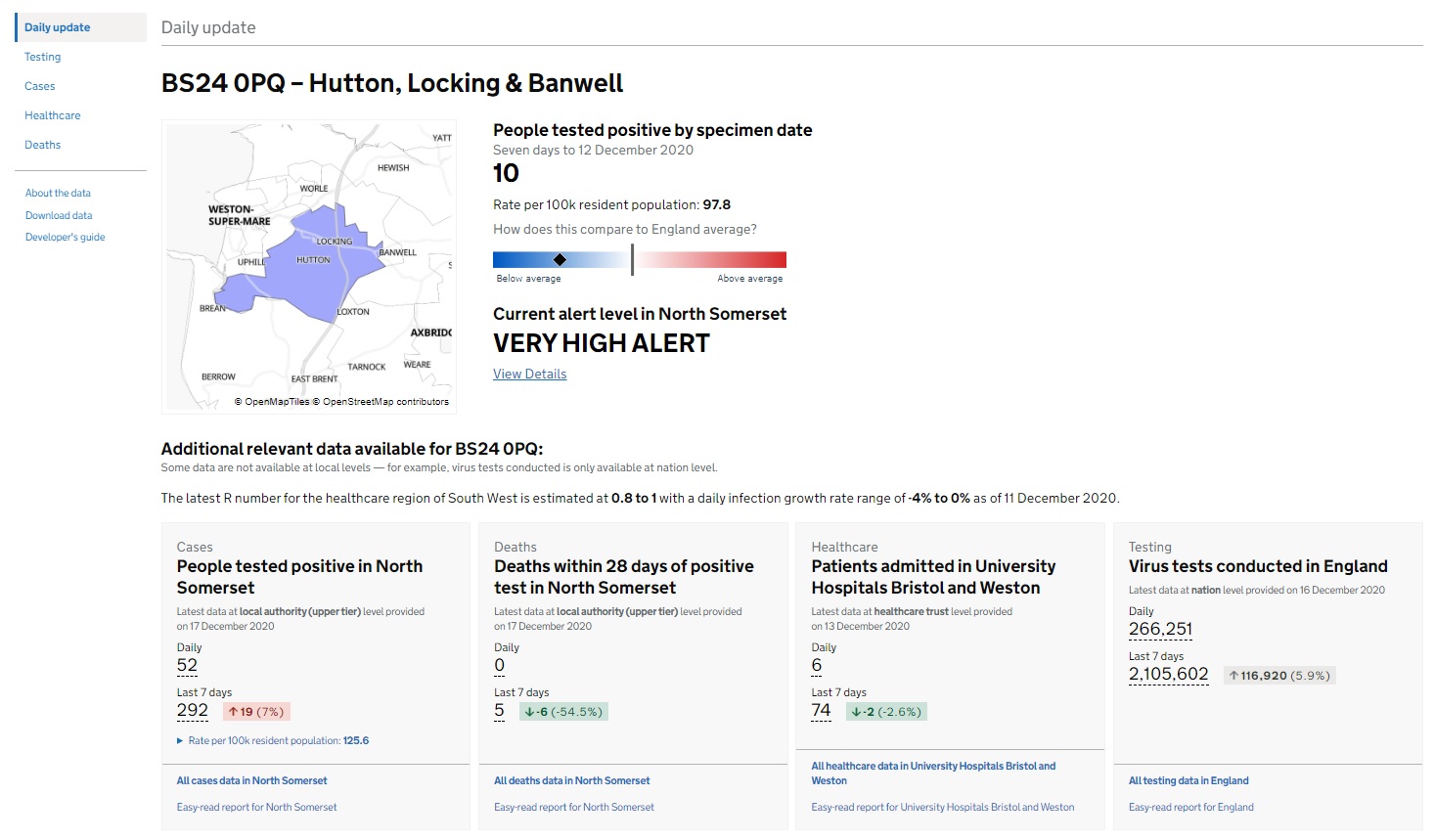 Bleadon Ward - (e.g. PDF) tests, deaths, hospitalisations, etc. |