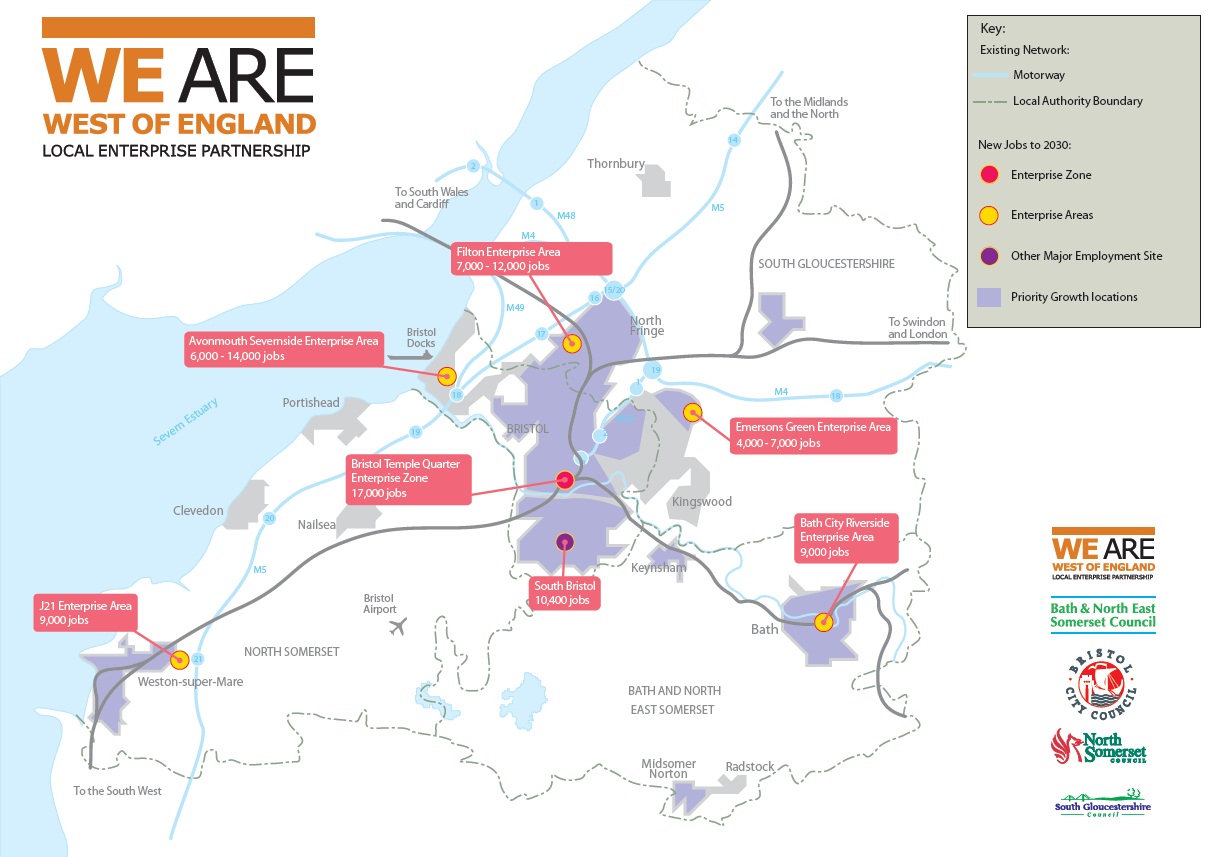 West of England Joint Spatial Plan Initiative "The four West of England authorities are working together to prepare a Joint Spatial Plan (JSP) and Joint Transport Study. The West of England’s Joint Spatial Plan will set out a prospectus for sustainable growth that will help the area meet its housing and transport needs for the next 20 years". See map of areas covered.