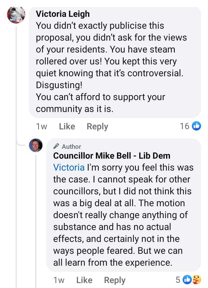 The whole process was poorly undertaken increasing potential racial tensions. There seem to hasve been little to no consideration of any potential resident concerns - from the way the motion was tabled, how NSC and Town Councillor partner speakers addressed the public (in person and on social media), police attendance and the general assumption that there were only two groups of people attending the meeting ('For' and 'Against'). It appears that there was no room for those who were undecided and went with an open mind.