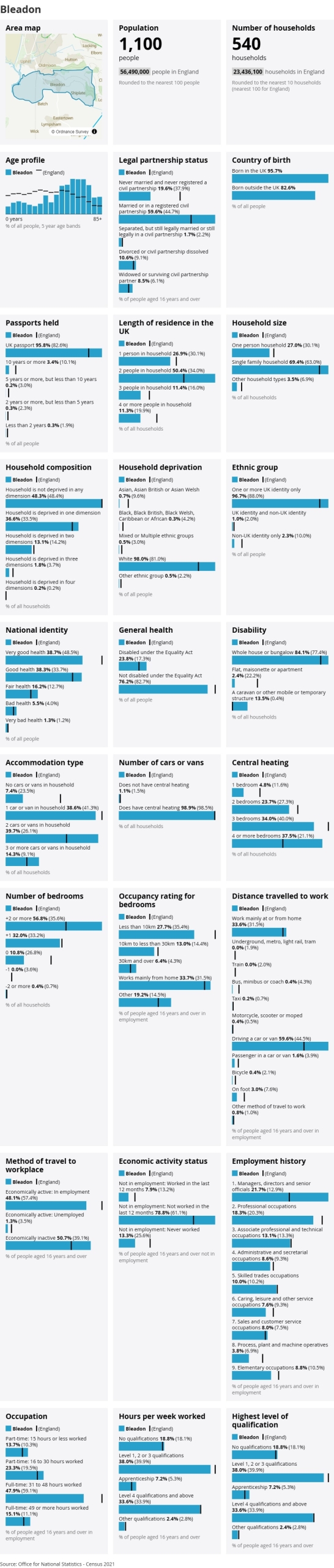 20212 ONS Census - there are about 1100 residents in Bleadon living in approximately 540 dwellings