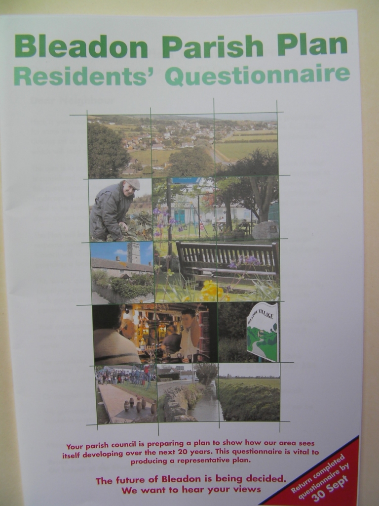 As many Bleadon residents may remember, in 2004/5 the Parish Council, as part of its bid to seek Quality Council status, decided to undertake a questionnaire of every Bleadon household in order to develop a Parish Plan to see how our area saw itself developing over the 20 year period. Please note this was prior to the Parish Boundary Review change that now includes the Hillcote area within the new parish boundary.