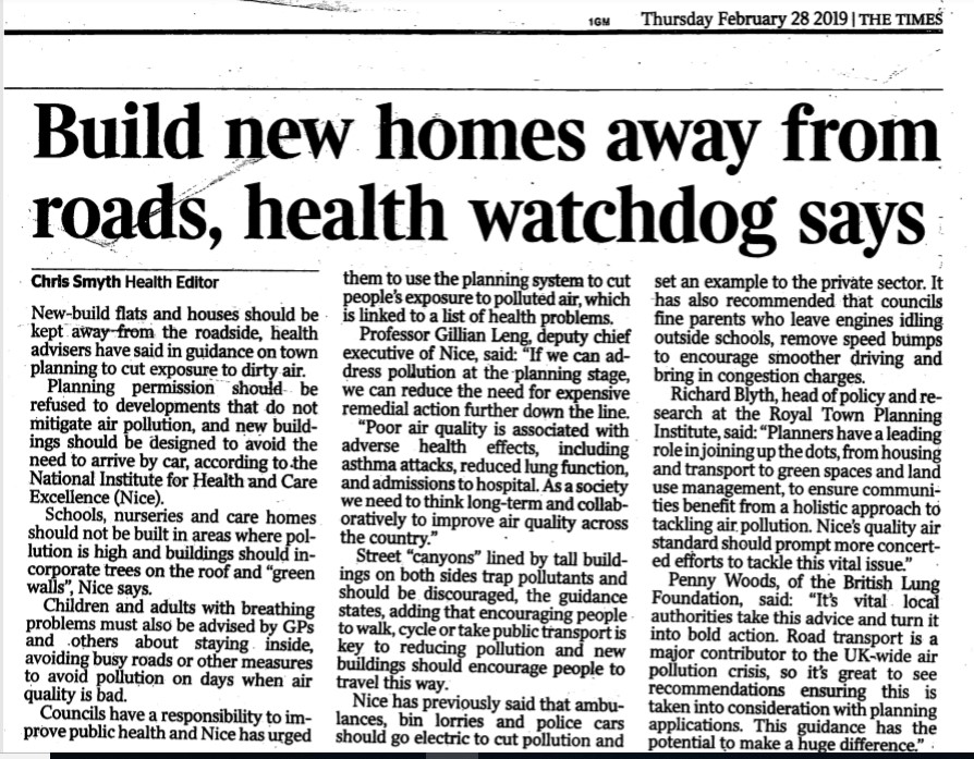 Build new Homes away from Roads - Feb 2019 "Planning permission should be refused to developments that do not mitigate air pollution ..."