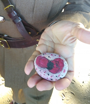 On Weston-super-Mare beach today a uniformed serving officer was unexpectedly approached by a child from a local school and presented with a hand-painted pebble with the image of a poppy.