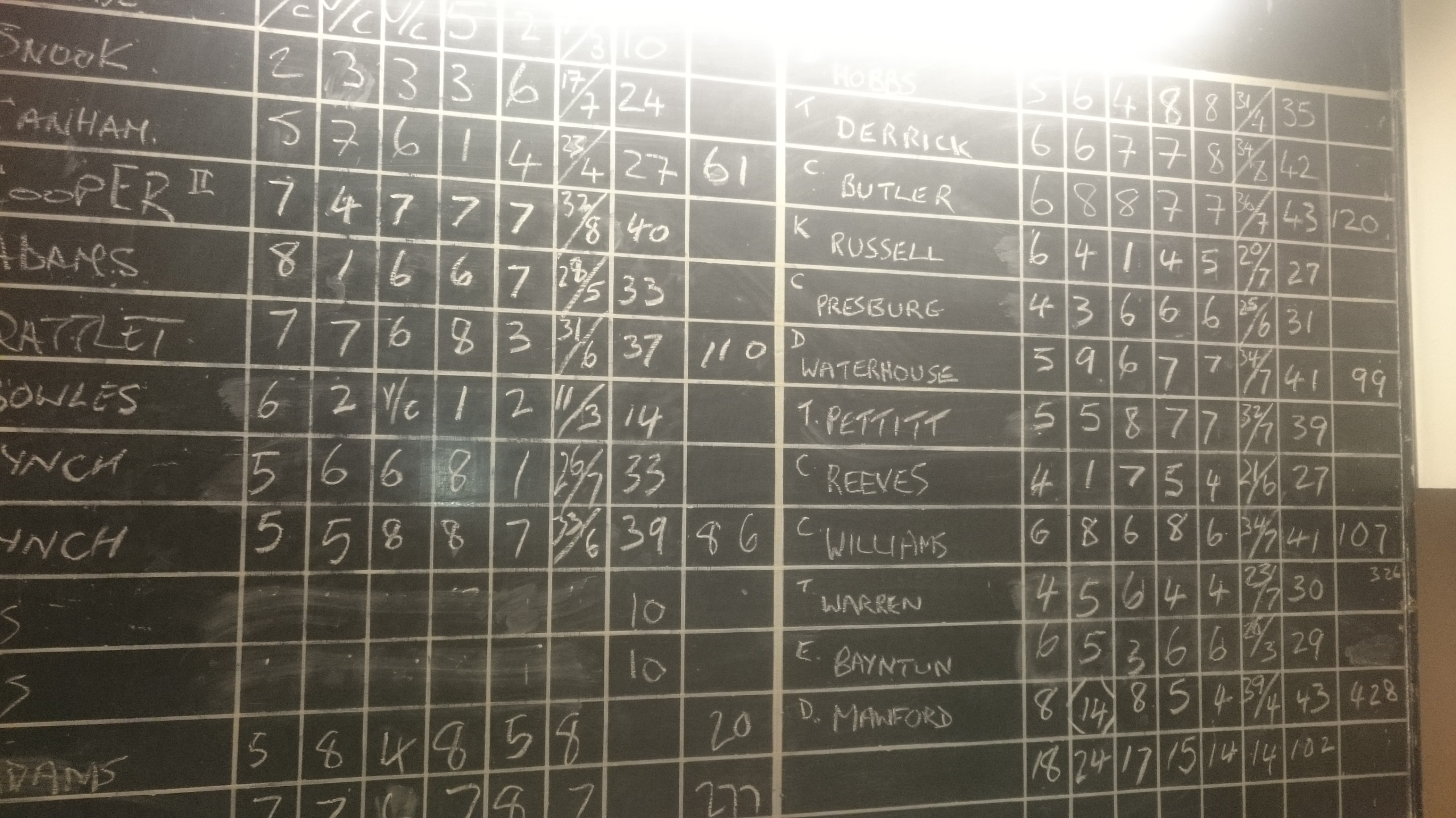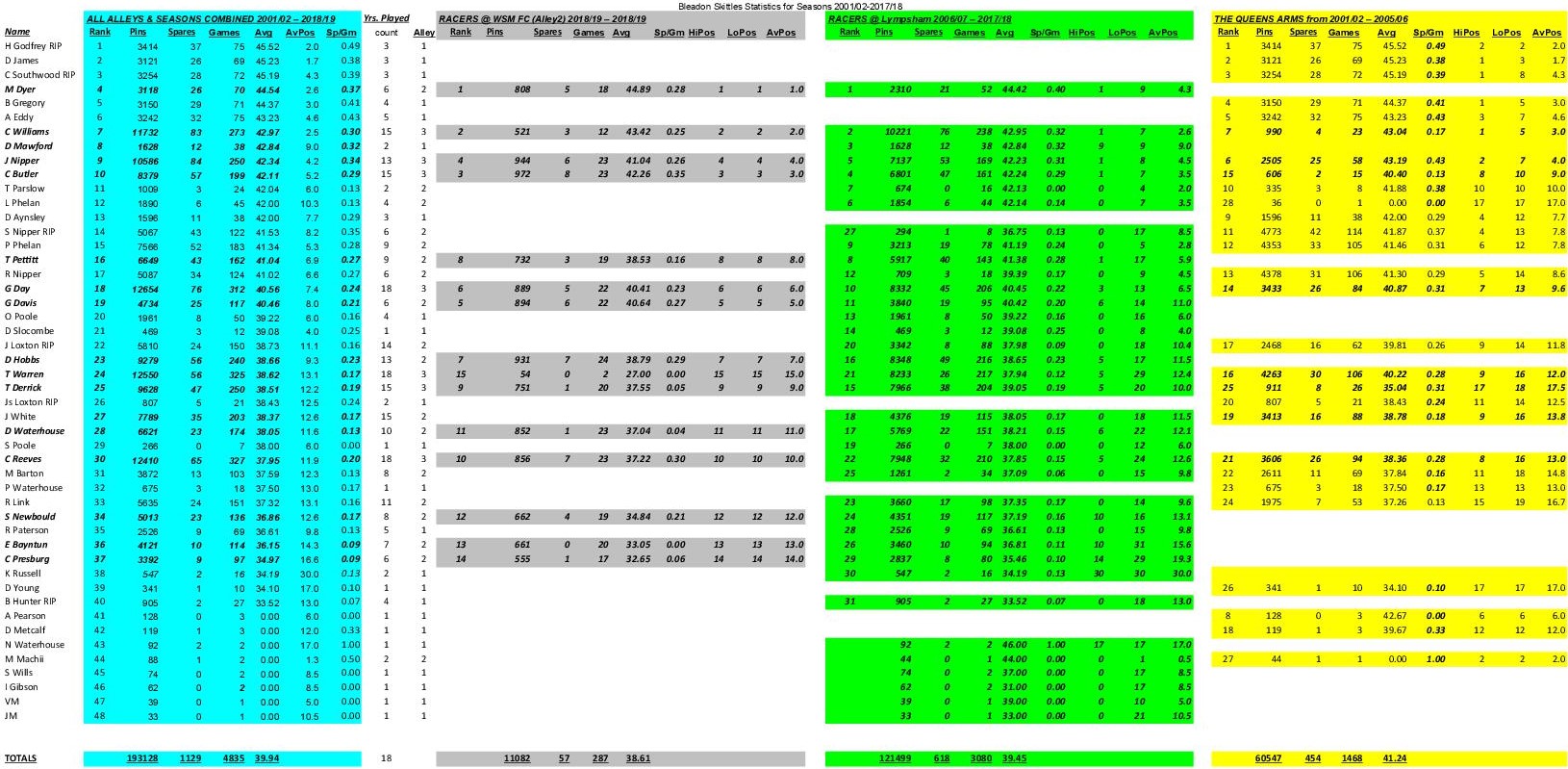 There was no need for the worried furrows on the Racers brows however, not with such queens of the alley Franz Butler (43) Ski Sunday Reeves and his fashionable headgear (36) and the biggest queen of the lot Seve Dyer (46) making up the final set.