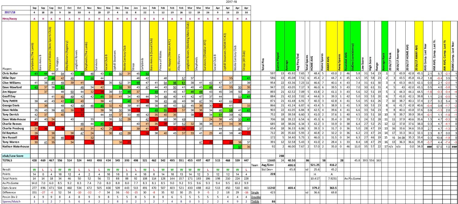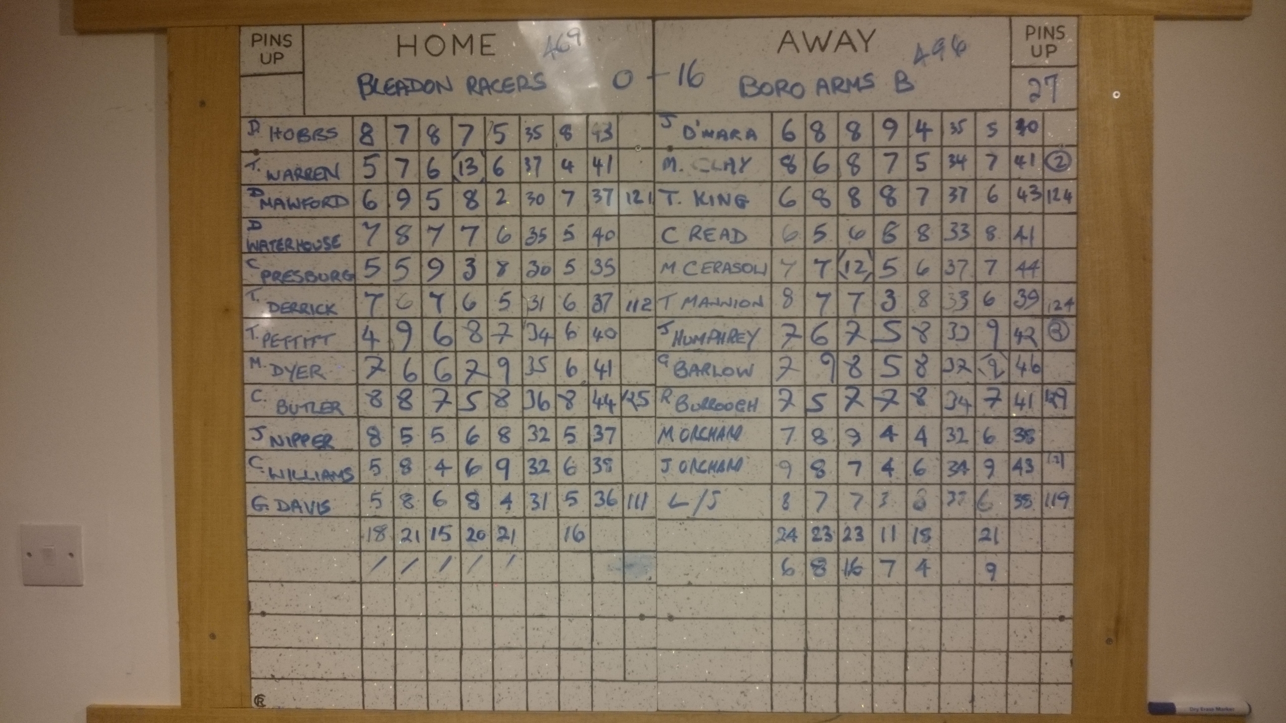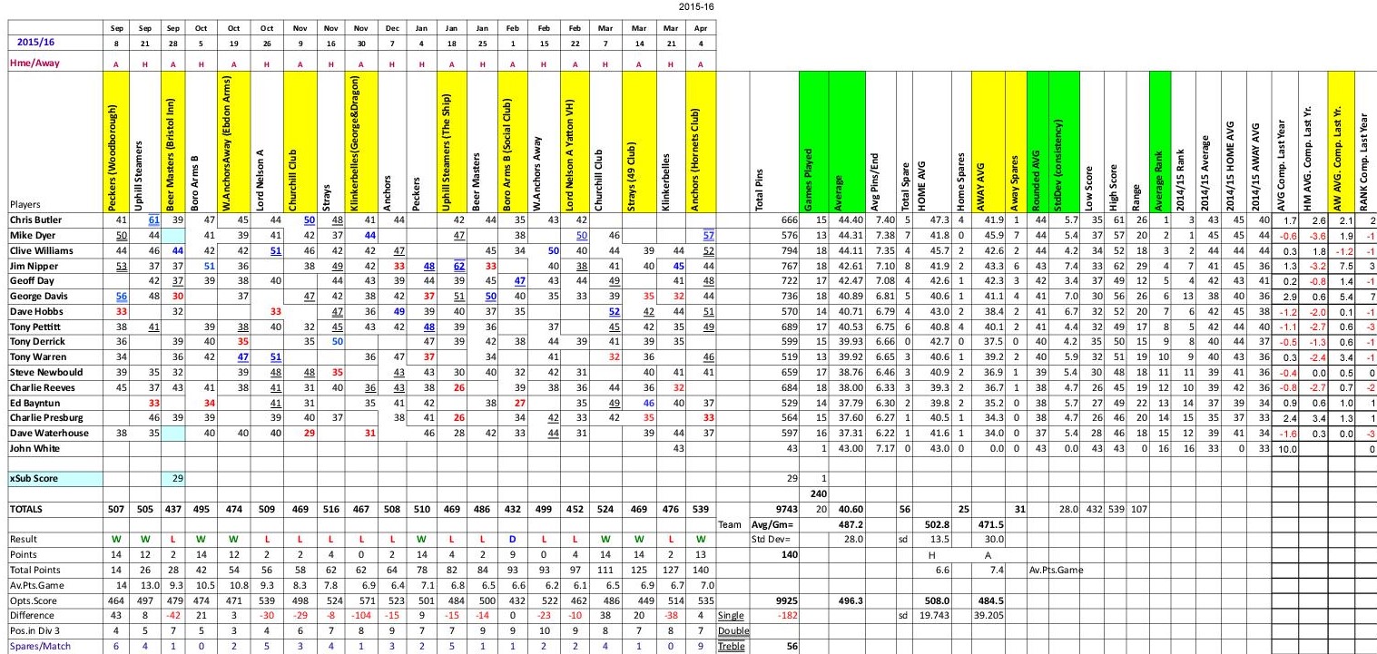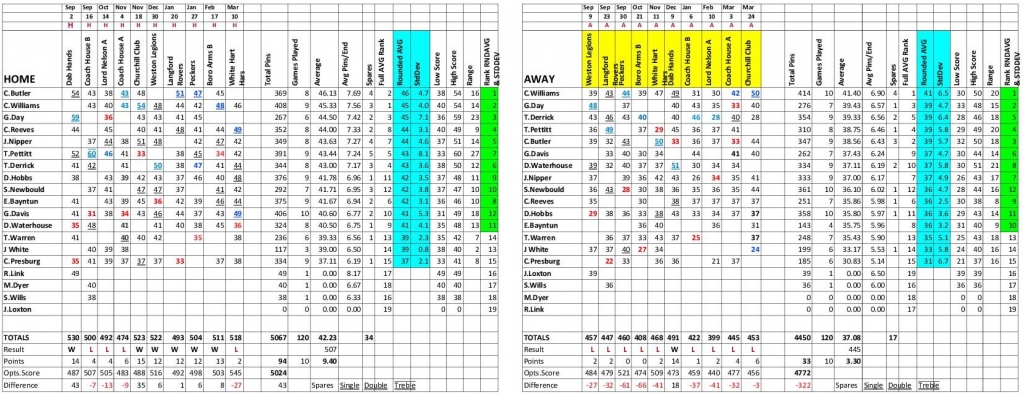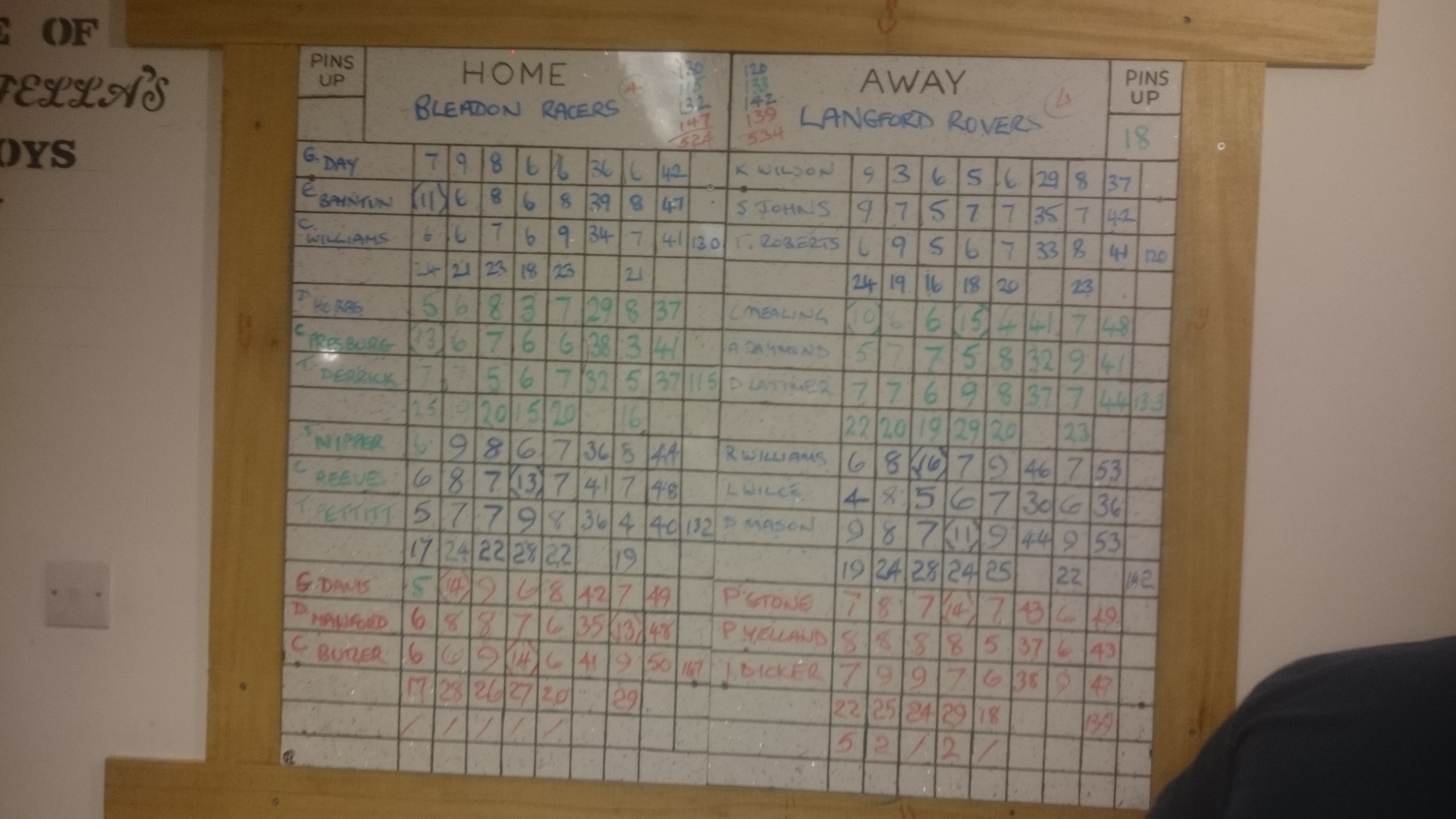 The result being that the Shepherds nibbled away at our lead winning the set by another 3 pins to leave Racers 9 ahead on the night.