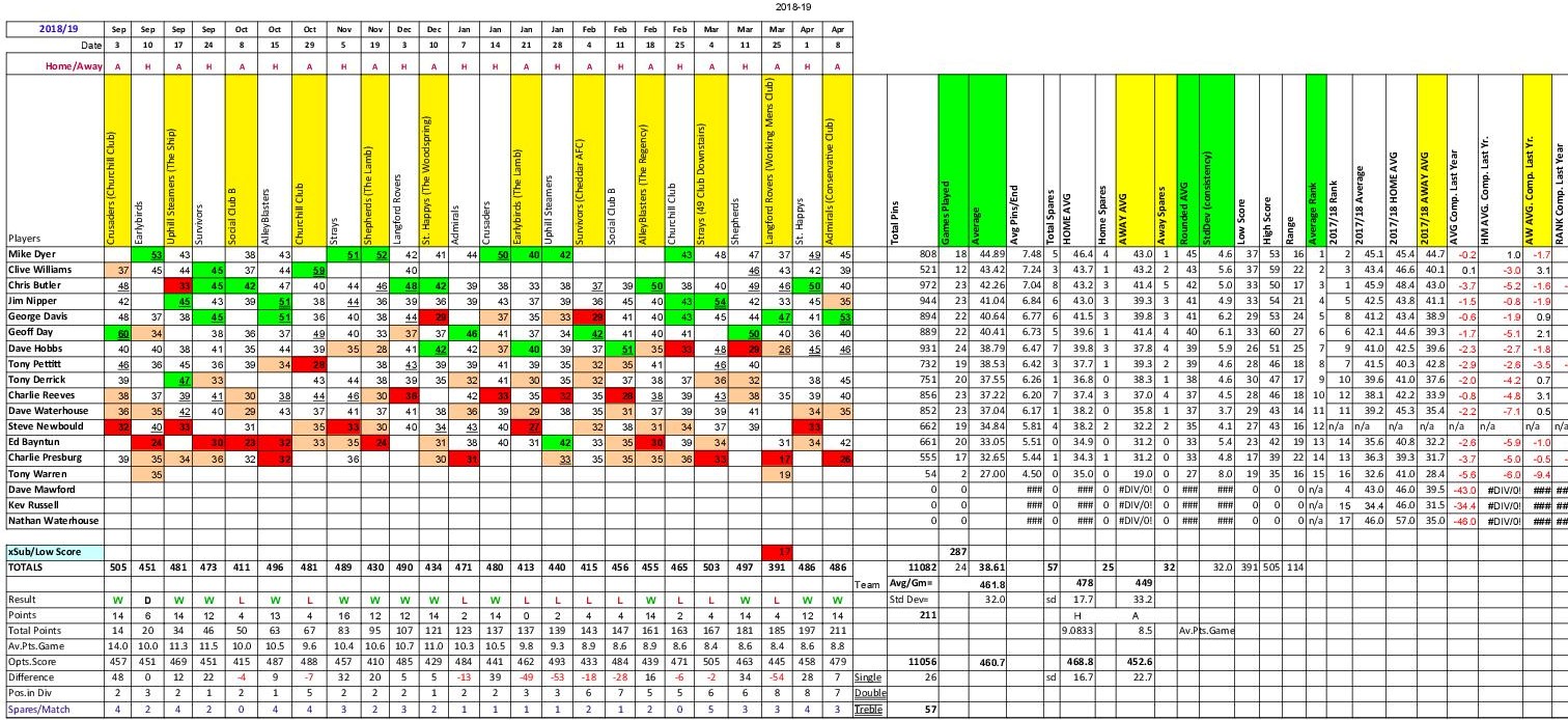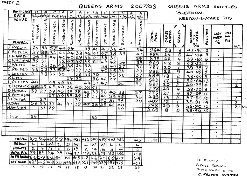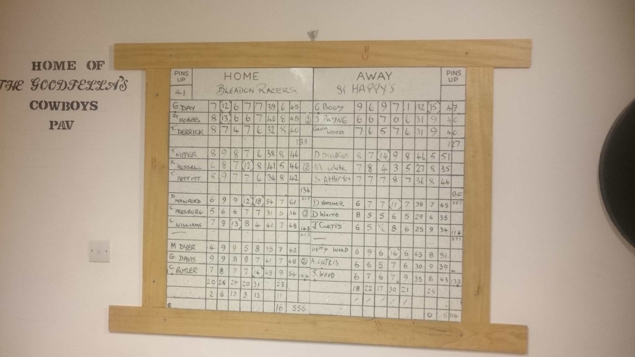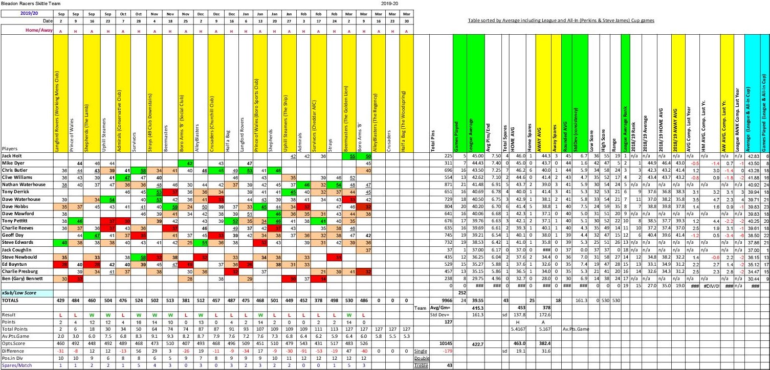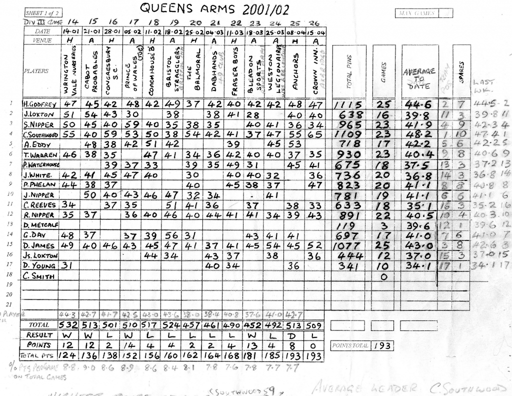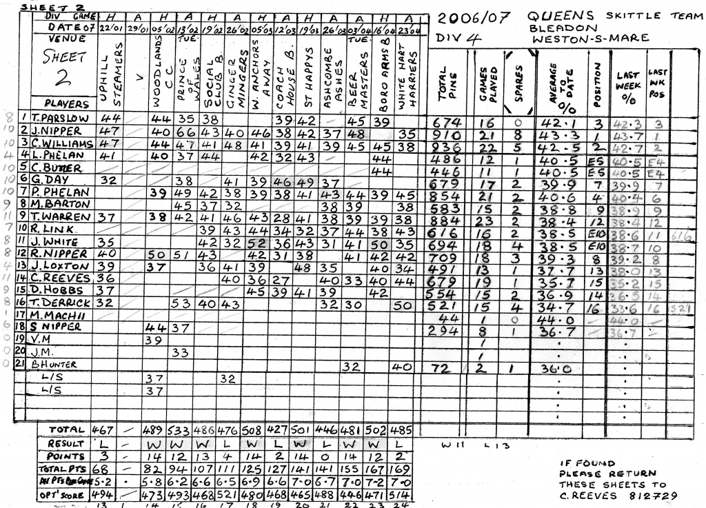 The result being that the Shepherds nibbled away at our lead winning the set by another 3 pins to leave Racers 9 ahead on the night.