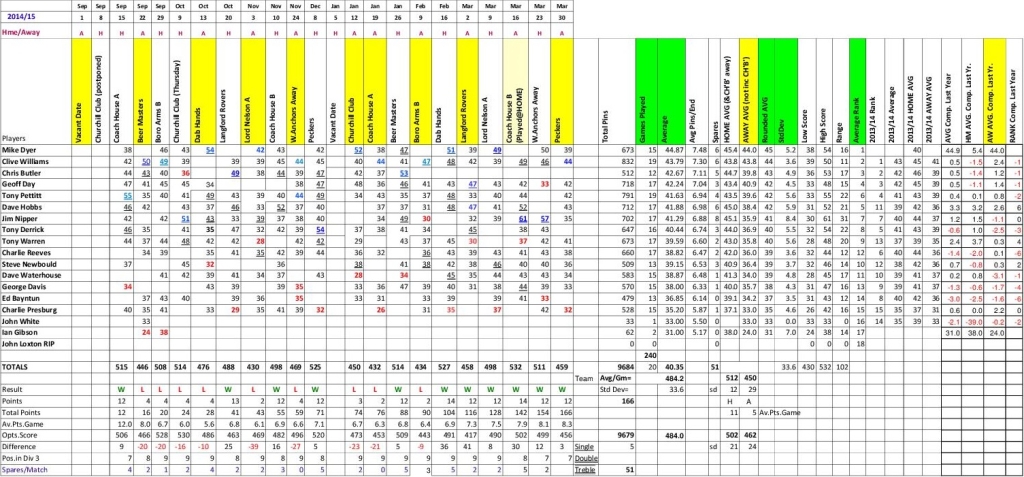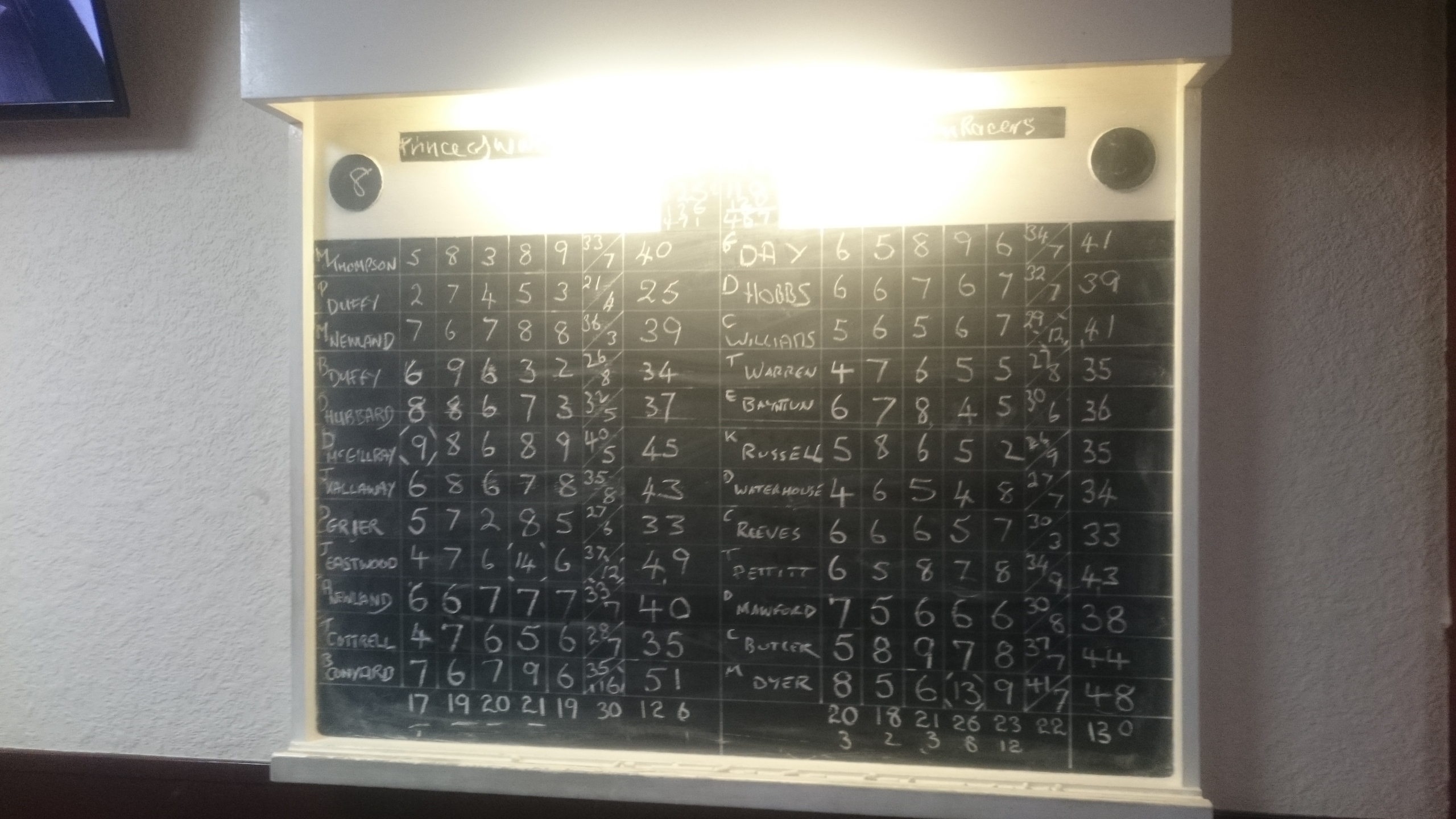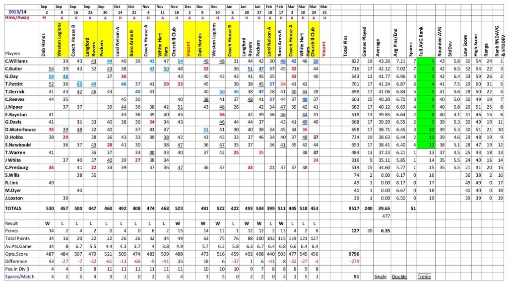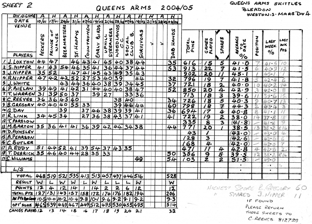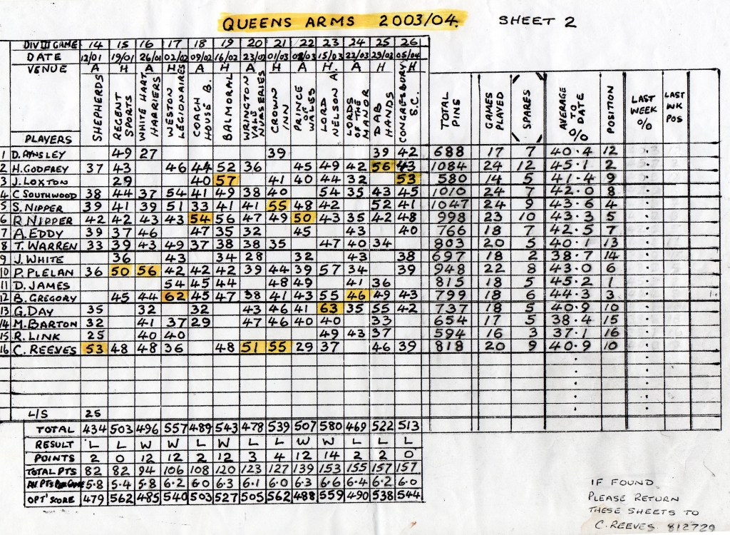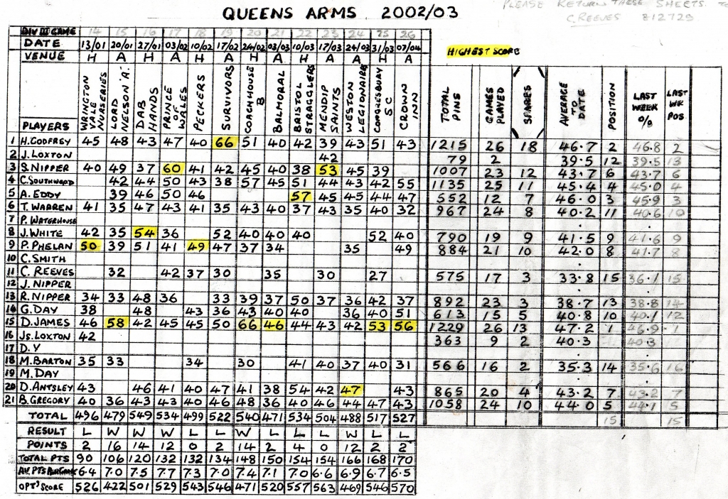 The result being that the Shepherds nibbled away at our lead winning the set by another 3 pins to leave Racers 9 ahead on the night.