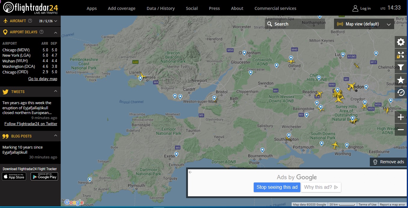 For those of you enjoying the peace and quiet resulting from the lack of aircraft flying overhead due to COVID-19 restrictions, you may want to look at this flight mapping application of which I was recently reminded.