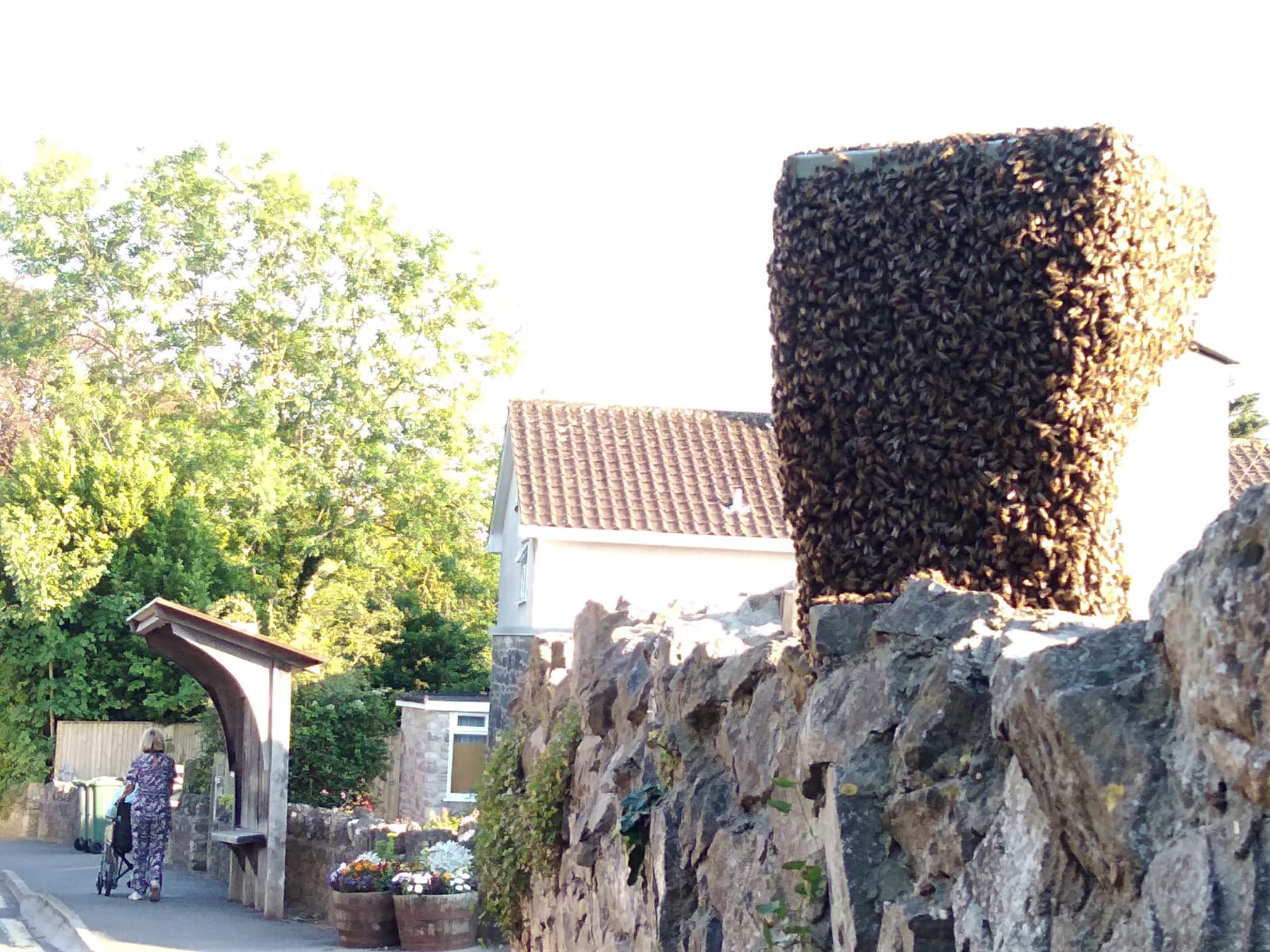 A swarm of 25-30,000 bees was sighted and bravely rescued last night between the bus stop and the Queens Arms.