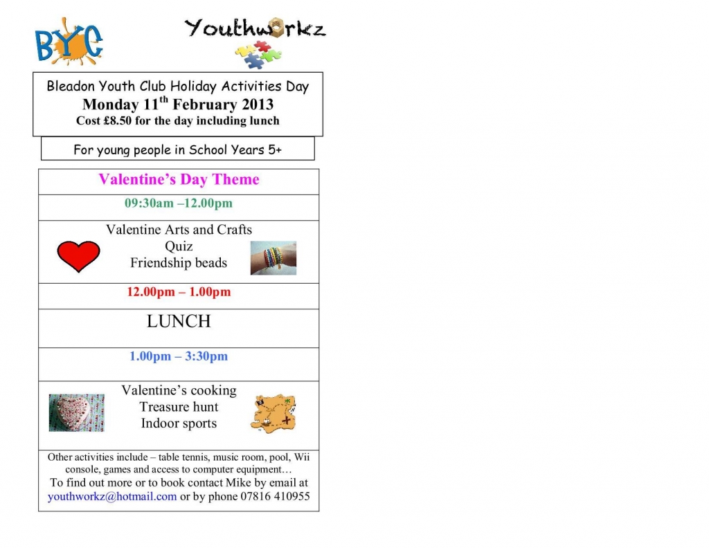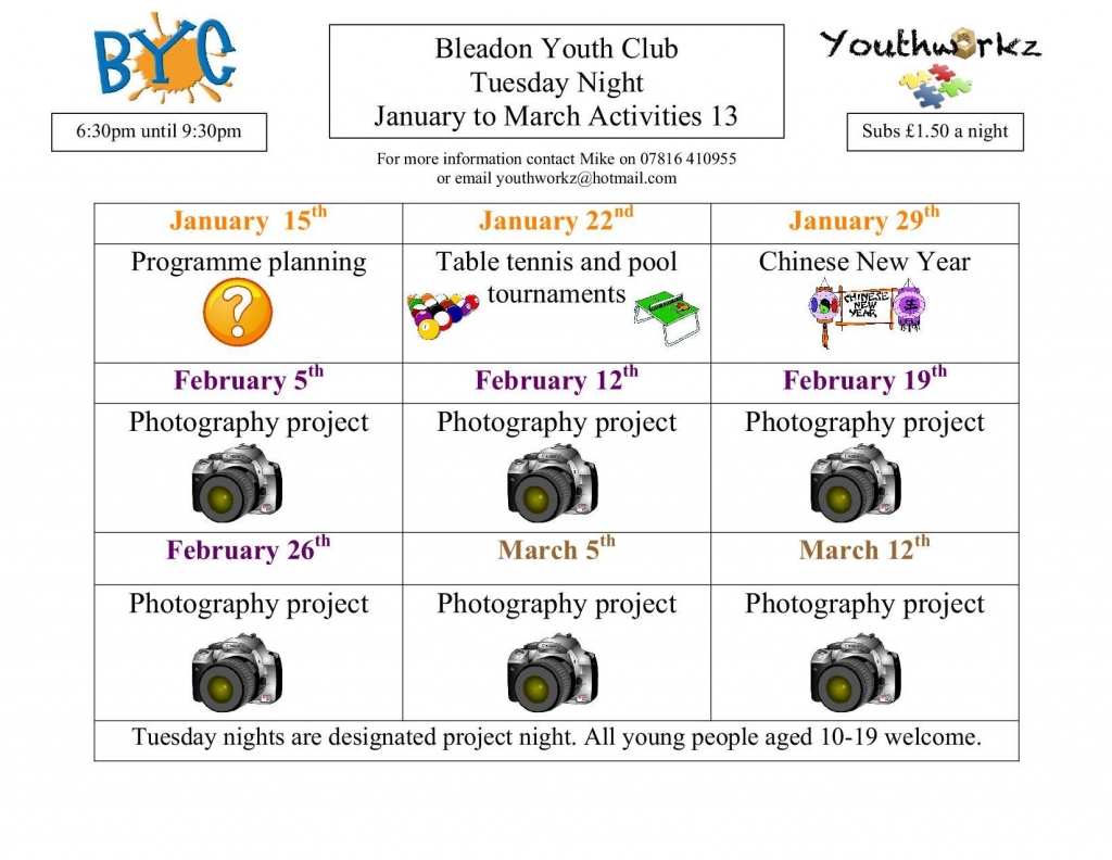 See Details Below Every Thursday 7pm-9pm for ages 10-16 Contact via www.facebook.com/bleadonyc/ or email or call 01934 813127